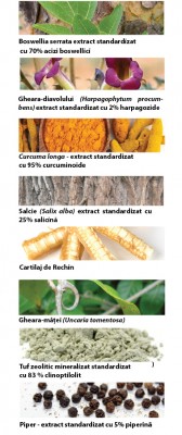 Boswellia serrata - Boswellia este un arbore ce se gaseste in India, Nordul Africii, dar ai in Orientul Mijlociu. Extractul de Boswellia este benefic pentru cartilaje si articulatii, redandu-le mobilitatea si diminuand sensibilitatea dureroasa.