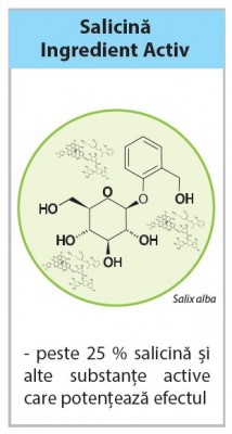 | Salcie (Salix alba) pulbere din coaja de Salcie | 160 mg |