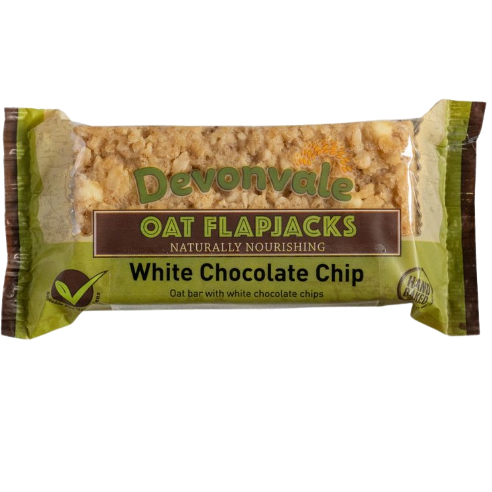 Un snack savuros, cu textură moale și gust intens deciocolata alva! Devonvale Flapjack combină fulgii de ovăz (44%) cu cipsuri de ciocolata alba este desertul perfect pentru o pauză dulce și hrănitoare. Potrivit pentru vegani, acest baton este preparat cu sirop auriu, margarină vegetală și zmeură liofilizată pentru un gust autentic.