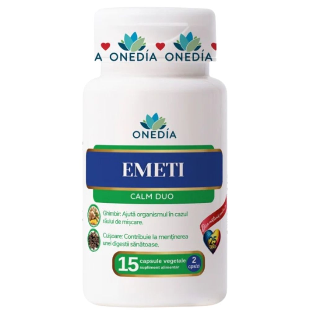Onédia Emeti Calm Duo este un supliment alimentar sub formă de capsule vegetale, special creat pentru a oferi suport natural în cazul senzaÅ£iilor de greaţă ÅŸi disconfort asociate răului de miÅŸcare ÅŸi pentru menÅ£inerea sănătăţii oaselor.