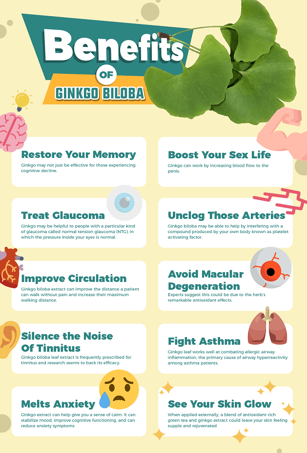 Chinezii au folosit secole la rand ginkgo biloba, iar acum si cercetarile moderne au luat in considerare beneficiile sale. In medicina traditionala aceasta planta este folosita pentru a trata tulburarile circulatorii si pentru a spori memoria. Astfel, extractul de Gingko Biloba poate fi folosit in special pentru maladiile asociate cu scaderea fluxului de sange din creier, in special la persoanele in varsta.