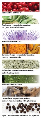 | Anghinare (Cynara scolymus) extract standardizat cu 2,5% acizi cafeilchinici | 108 mg |
