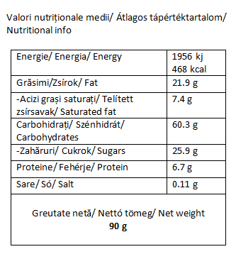 Un baton delicios de ovaz, cu o nutritie perfect echilibrata, special realizat pentru cei care urmaresc un stil de viata sanatos. Pe langa fibrele din cereale integrale, batonul Ma Bake contine inca un ingredient bogat in antioxidanti, nuca.