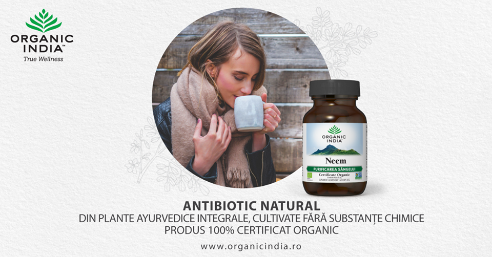 ORGANIC INDIA Neem, Antibiotic si Antifungic Natural sustine sanatatea tesuturilor moi si a aparatului urinar in cazul infectiilor fungice si bacteriene, curata si purifica sangele, este benefic pentru detoxifierea organismului, sustine sistemul imunitar si sanatatea pielii, contribuie la echilibrarea digestiei si a metabolismului si la mentinerea unui nivel sanatos al glucidelor din sange.