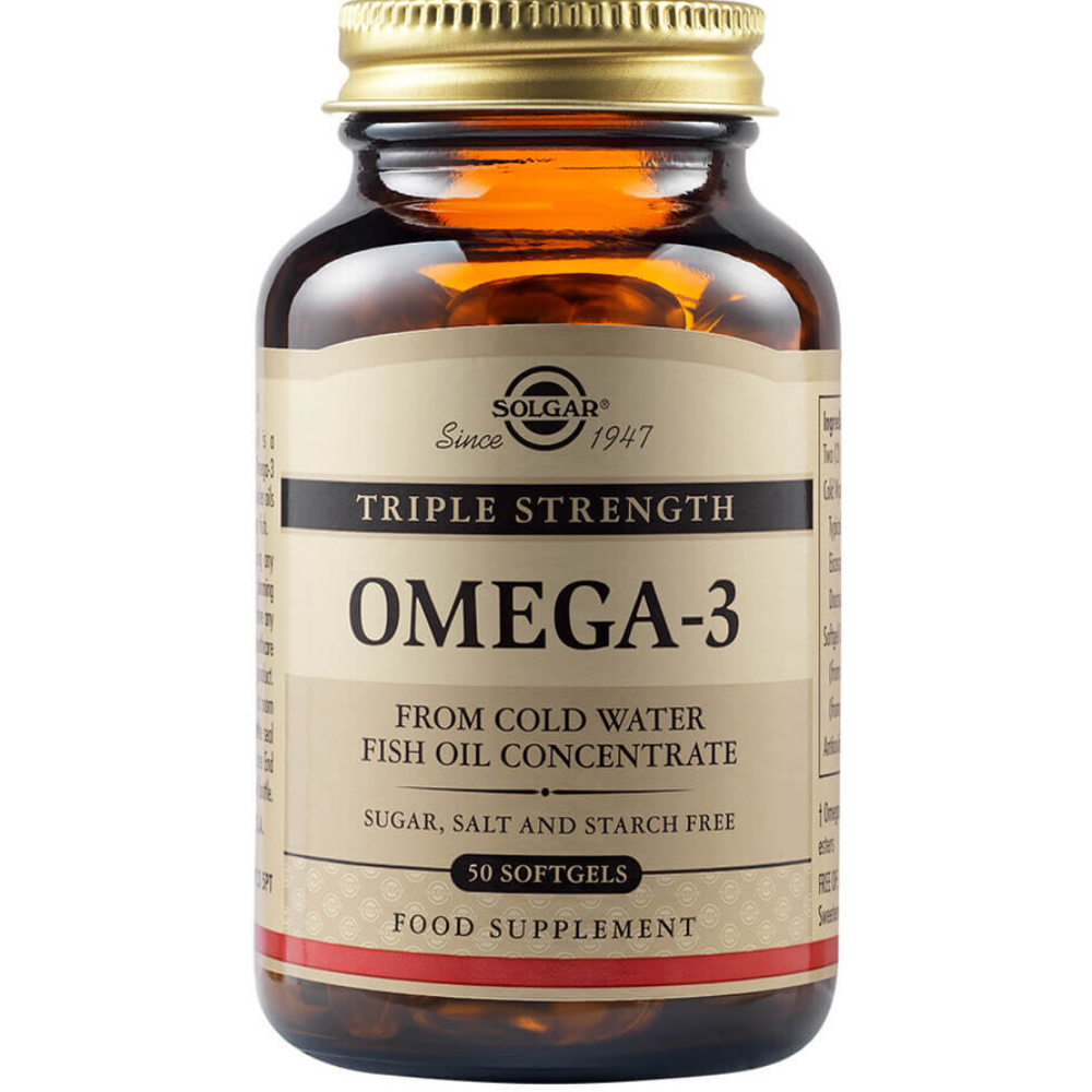 Solgar Triple Strength Omega-3 este un supliment alimentar de înaltă potență, obținut prin concentrare de ulei de pește din apa rece. Fiecare capsulă moale conține un raport optim de acizi grași esențiali EPA și DHA, recunoscuți pentru susținerea funcțiilor cardiovasculare, cerebrale și articulare. Formula “Triple Strength” asigură o cantitate sporită de Omega-3 într-o singură doză, reducând numărul de capsule necesare zilnic, pentru un stil de viață activ și echilibrat.