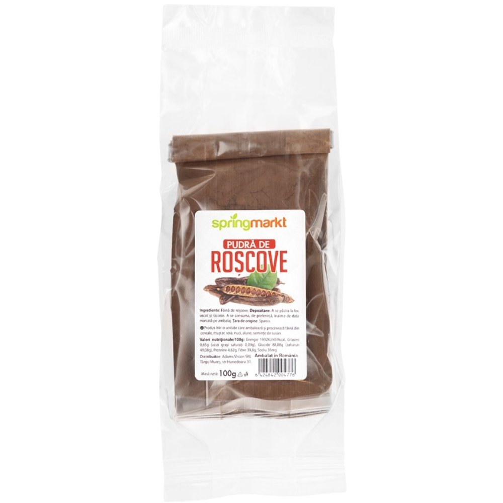 Pudra obținută din fructul roscovului, are o culoare și un gust foarte asemanatoare cu cacaua. Este bogată în vitamine, minerale, fibre alimentare și calciu, fiind un antioxidant de excepție. Are un indice glicemic foarte mic. Nu conține cofeină, teobromină (o substanță organică cu efect excitant al sistemului nervos), gluten, lactoză sau colesterol. Se poate folosi cu succes ca înlocuitor de cacao, adăugat în lapte, prăjituri, budinci sau băuturi.