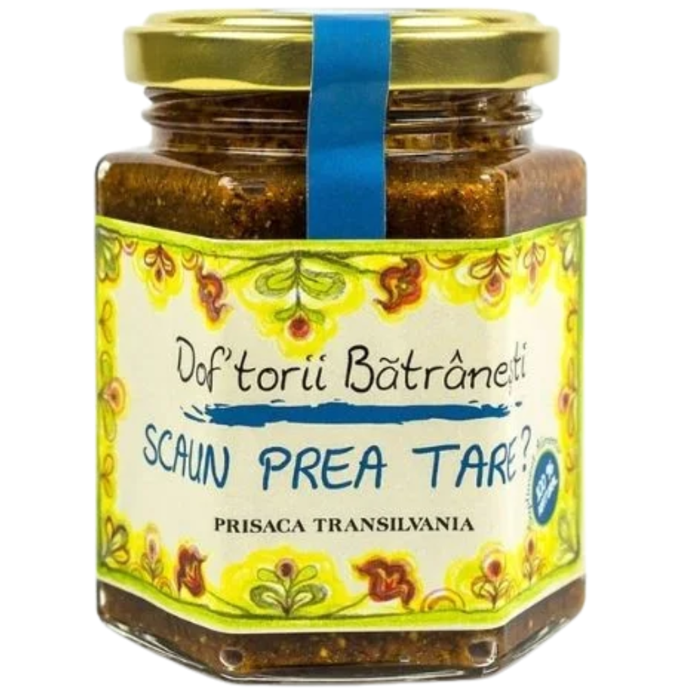 “Scaun prea tare?” se distinge prin modul său de acțiune gradual și echilibrat: începe prin hidratarea delicată a conținutului intestinal, continuă prin susținerea motilității normale și se finalizează cu promovarea unui tranzit komfortabil. Ideal pentru persoanele cu un stil de viață sedentar, diete sărace în fibre sau perioade de stres, acest produs combate eficient senzația de disconfort, balonarea și inflamațiile ușoare. Borcanul etanș de 230 ml, cu sigiliu de protecție, poate fi păstrat cu ușurință și utilizat pe termen lung, menținându-și proprietățile active chiar și după deschidere. Sortimentul “Dof’țorii Bătrâneții” celebrează obiceiurile sănătoase ale înaintașilor și aduce natura direct pe masa consumatorului modern.