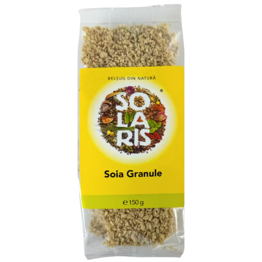 Granulele de soia Solaris reprezintă o soluţie excelentă pentru oricine îşi doreşte un aport proteic de calitate şi un stil de viaţă sănătos. Obţinute prin procesul de texturare a făinii de soia non-OMG, aceste granule au o structură uşor poroasă, care le conferă capacitatea de a absorbi rapid lichidele şi aromele din preparatele culinare, păstrându-şi totodată fermitatea. Bogate în proteine vegetale (peste 60% pe uscat), granulele acoperă o gamă largă de nevoi nutriţionale: aminoacizi esenţiali pentru refacerea masei musculare, fibre dietetice care contribuie la digestie şi saţietate, un conţinut redus de grăsimi şi zero colesterol. Versatilitatea lor permite integrarea în reţete diverse – de la supe şi tocăniţe, la salate, umpluturi pentru legume, burgeri şi chiftele vegane – adaptându-se oricărui regim alimentar, fie el vegetarian, vegan sau low-carb. În plus, ambalajul practic de 150 g păstrează prospeţimea produsului, în timp ce valoarea energetică moderată şi aportul echilibrat de minerale (calciu, magneziu, fier) îl recomandă atât sportivilor, cât şi persoanelor care urmăresc controlul greutăţii sau pur şi simplu diversificarea meniului zilnic, cu ingrediente naturale şi fără organisme modificate genetic.