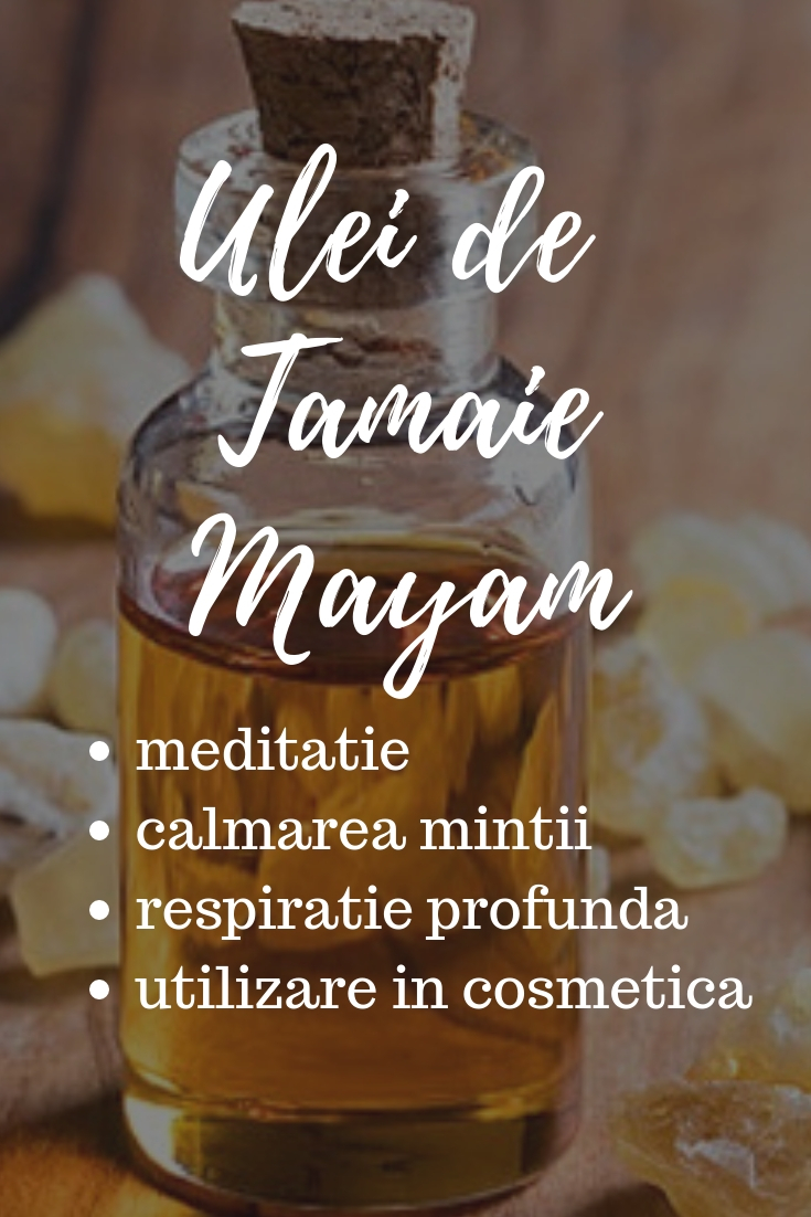 Este considerat ca fiind un ulei mistic folosit pentru elevare spirituala. Este stimulator al sistemului imunitar si revitalizant pentru piele. Datorita parfumului sau balsamic, dulce-picant si cu note orientale, rasina extrasa era folosita inca din antichitate in ritualurile religioase pentru a aduce jertfa zeilor, pentru fumingarea bolnavilor, pentru alungarea spiritelor rele. In vechiul Egipt, femeile foloseau tamaia impreuna cu mirul in masti de intinerire a pielii.