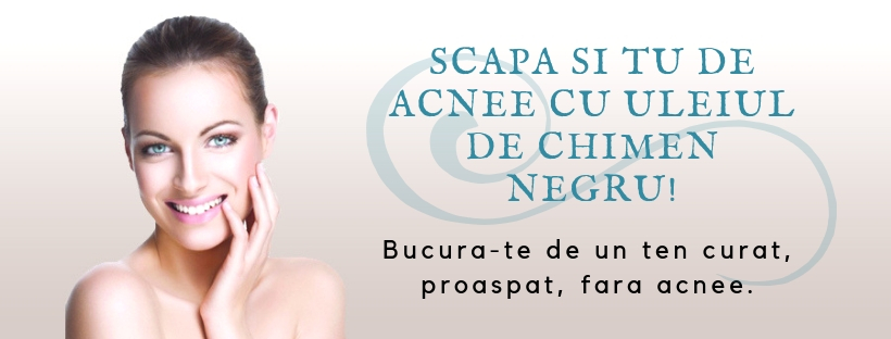 Va recomandam cu incredere pentru protejarea tenului uleiul de Chimen Negru. Diluati cateva picaturi in ulei de cocos si aplicat pe ten, in special in zonele problematice. Repetati procesul odata la 2-3 zile. Acesta este doar una din multele posibilitati de utilizare a uleiului de chimen negru pentru tratarea acneei. Deoarece are proprietati de purificare, cicatrizare si consolideaza protectia pielii, acest tip de ulei va va ajut in scaparea acneei. Fie daca este pentru adolescenti sau adulti, uleiul de chimen negru poate face minuni.